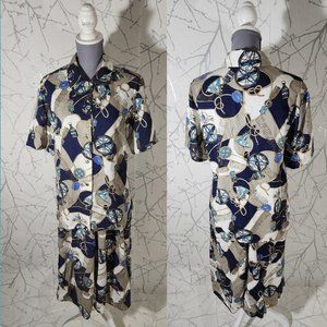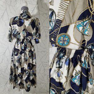 St. Michael VTG Nautical Sailing Printed Pleated Midi Skirt Set