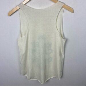 Keep Calm and Drink On St. Patrick's Day Tank Top in White with Green Print. Four leave clover on the front. Scoop neck. Sleeveless. Polyester and spandex. Hand wash. Very good pre-loved condition. Only flaw is missing size tag but see measurements below. Fits like a small or medium.