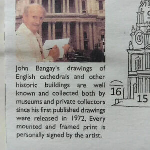 Print of St. Paul's Cathedral by John Bangay. Bought in the church store in the 1980's. Never framed or hung. Not faded. Bought by my Mother. In it's original plastic. By John Bangay well known English architectural artist.