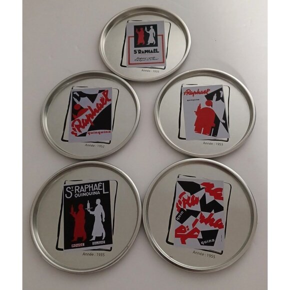 St Raphael L'Aperitif France Aperitif Metal Coasters Lot of 5 Ad Promo Set Frenc