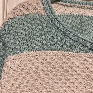 St. John Pastel Blue Wool Blend Striped Knit Crewneck Pullover Sweater Small