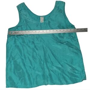 StMichael M&S Silk Blouse 70s Teal Turquoise Blue Europe 14 Vintage Top