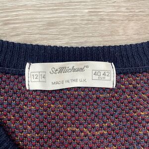 St Michael Vintage Womens Knitted Sweater Crewneck Button Down Black Size 40-42