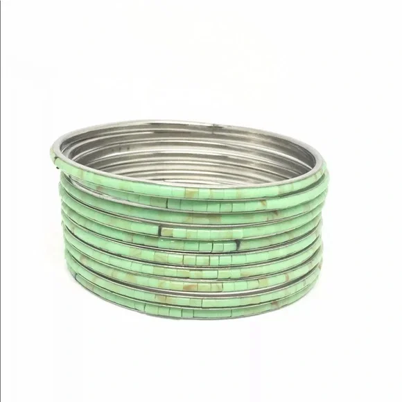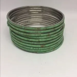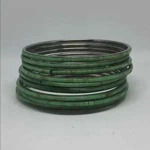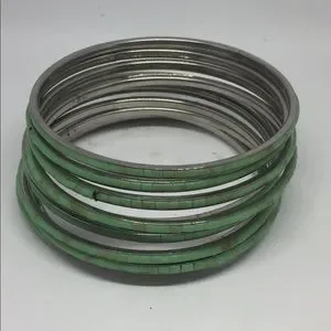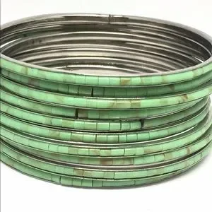 Stack Of 10 Bangles Bracelets Inlaid She’ll Handmade Turquoise