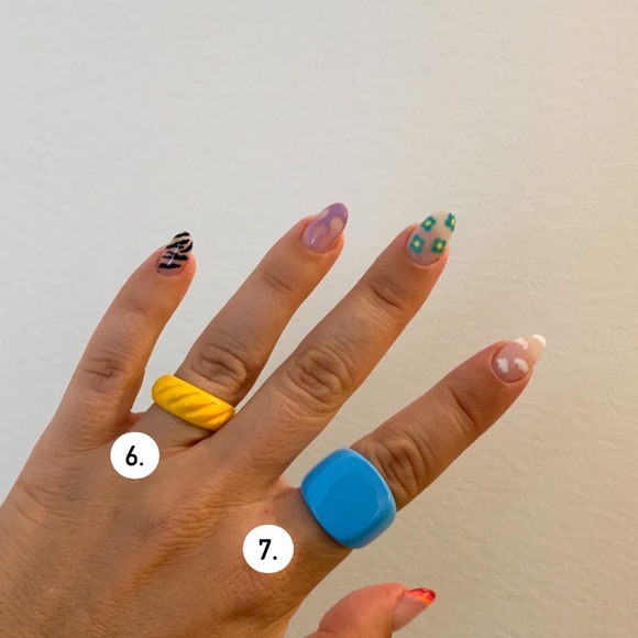 Because Y2K style is back! Gorgeous rings to complete your summer look! Beautiful colors and in a variety of shapes. All rings are open rings so they will fit any finger, just choose your favorite style from 1-9!