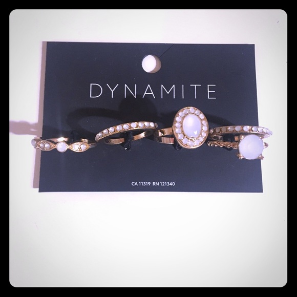 Stackable ring set from Dynamite. Beautiful white “stones” on gold coloured metal. Brand new and giftable.