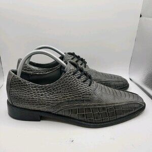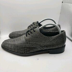 Stacy Adams Mens Gray Leather Crocodile Print Oxford Shoe 8.5 M Pietro 24675