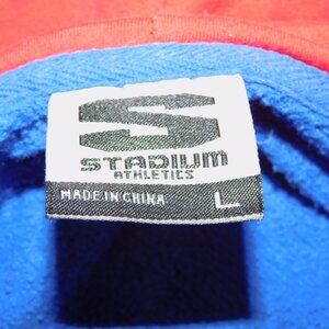 This Mens Large Stadium Athletics Kansas University Jayhawks NCAA Blue Embroidered Full Zip Hoodie is in Good clean condition. Hoodie body is 70% Cotton - 30% Polyester - Hood Lining is 100% Cotton. Machine washable. Features 2 Front Hand Pockets.