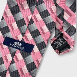 Stafford Silk Tie Pink Gray Geometric Checker Formal Professional