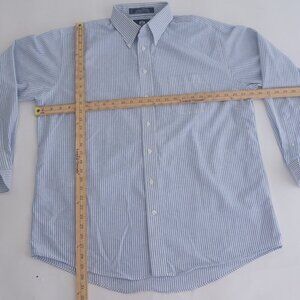 Stafford Wrinkle Free White Blue Stripe Oxford Cotton Button Down Dress Shirt 17