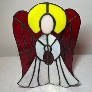 Stained Glass Angel Red and Yellow. 11.5” tall. Stunning vibrant free-standing