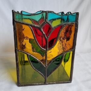 Stained Glass Tulip Box Votive Candle Holder Storage Display Very Pretty
