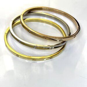 Perfect for those with small wrists! The inner circumference measures 6 1/2" / 16.5 cm. The bangle is an oval shape so it sits perfectly on the wrist with the stones always on top. The Cubic Zirconia stones are set in bezel settings, not glued.