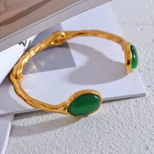 Discover the perfect blend of natural beauty and modern sophistication with our Natural Stone Stainless Steel Gold Color Cuff Bracelet Bangle. Featuring a stunning natural stone centerpiece set in durable, hypoallergenic stainless steel with a radiant gold finish — this cuff adds a touch of luxury to any outfit.
