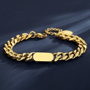 Stainless Steel Charm Bangle Adjustable Cuban Link Gold Plated Chain
