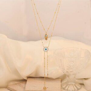 Stainless Steel Double Layer Chain with Dropping Eyes and Palm 18K Gold Plated