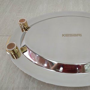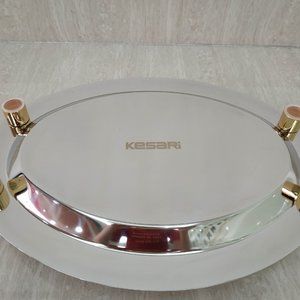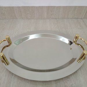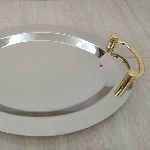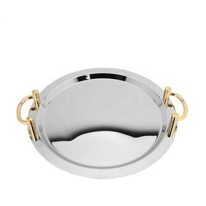 16" Stainless Steel Round Serving Tray with Gold Handles .