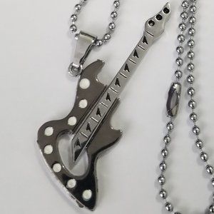 Stainless Steel Gunmetal Guitar Necklace – Rock Music Pendant, Unisex, NWT