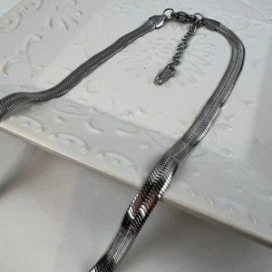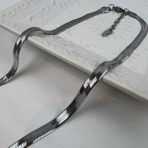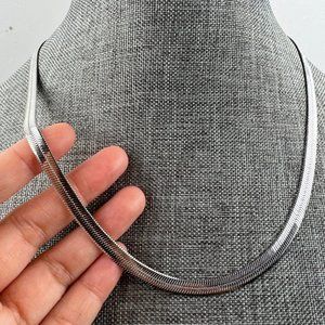 A Herringbone chain offers a modern necklace look. Necklace has a lobster clasp and has a high polished finish that gives it a shiny look.
