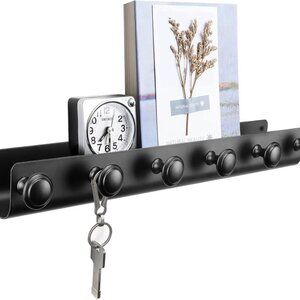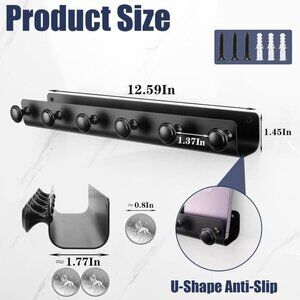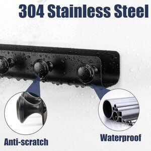 Vanloory Wall Mounted Coat and Towel Hooks - Heavy Duty 6 Hook Stainless Steel Hanger for Bags, Hats and Keys - Black