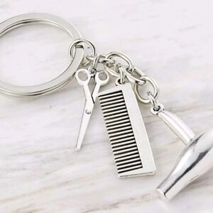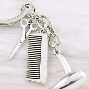 Scissors and Comb Pendant Keychain