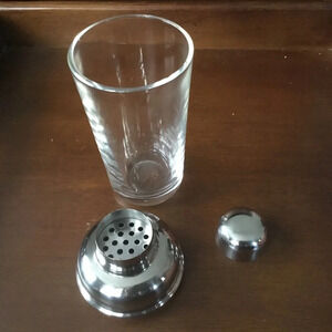 Stainless Steel and glass cocktail shaker- vintage heavy glass cocktail shaker