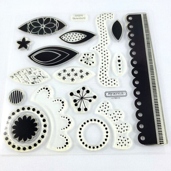 Stamp Set Close To My Heart Serendipity D1275 Acrylic Stamp Set CTMH Floral Leaves MCM Atomic.