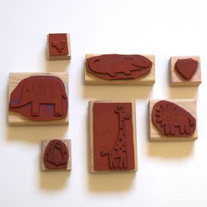 Stampin Up Set of 7 Zoo Animal Rubber and Wood Stamps