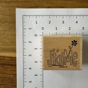 THE WORDS are in FRENCH. Stampin' Up Wood stamps from the collection: Simply Said, Sprinkles and Friends to Friends Set is a high-quality vintage unit containing 21 wood stamps (only 4 were used) with a love and hearts theme. The largest stamp is from All Right Media. All stamps are Made in the United States. This set is perfect for crafters and stamp enthusiasts looking to add a touch of love and friendship to their projects.