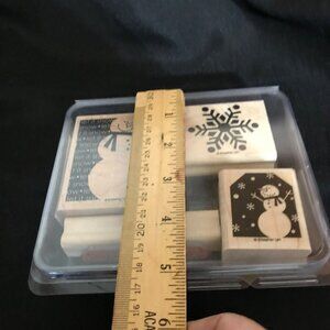 Capture the essence of winter with this charming Stampin' Up! rubber stamp set. Featuring snowman and snowflake designs, it's ideal for holiday crafts.
