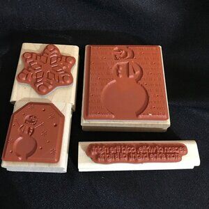 Stampin Up! Two Cool Dudes Rubber Stamp Set Of 4 Snowman & Snowflake Design
