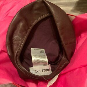 Stand Studio Nwt Freida Faux Leather Beret in Burgundy