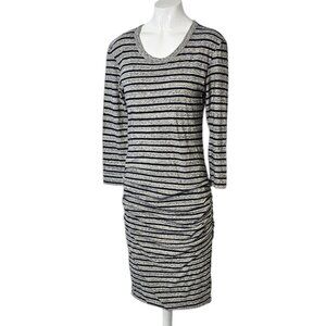 Standard James Perse Estilo Ruched Dress Size 3 Striped 3/4 Sleeve Cotton