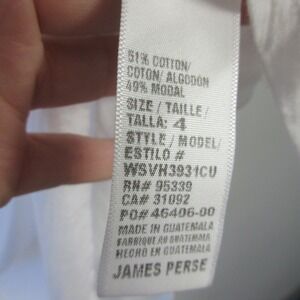 Standard James Perse V Neck Shirt Top Women 4 XL White Long Sleeve Burnout 146