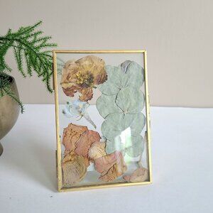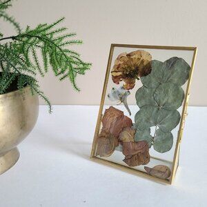 6 1/4'' x 4 1/4''. If you open a little lock on the side you can remove the flowers and replace them with your own arrangement or picture of your choice. Good condition.