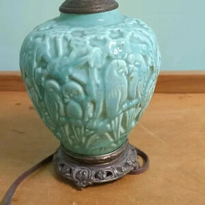 Art Nouveau lamp of lovebirds by Stangl. From our Great Grandparents house. In fantastic condition.