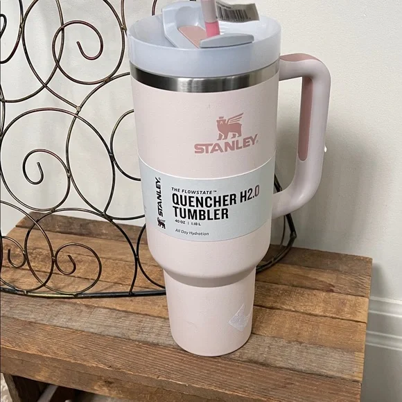 🆕 Stanley Quencher H2.0 - Constructed of recycled stainless steel for sustainable sipping, our 40 oz Quencher H2.0 offers maximum hydration with fewer refills. Commuting, studio workouts, day trips or your front porch—you’ll want this tumbler by your side. Thanks to Stanley’s vacuum insulation, your water will stay ice-cold, hour after hour. The advanced FlowState™ lid features a rotating cover with three positions: a straw opening designed to resist splashes while holding the reusable straw in place, a drink opening, and a full-cover top. The ergonomic handle includes comfort-grip inserts for easy carrying, and the narrow base fits just about any car cup holder.*please note, missing the original straw and had a blemish on the handle as noted in photo 6. Stanley is new and not been used. Please manage expectations with missing straw and blemish on handle. Bundle and save $$$.