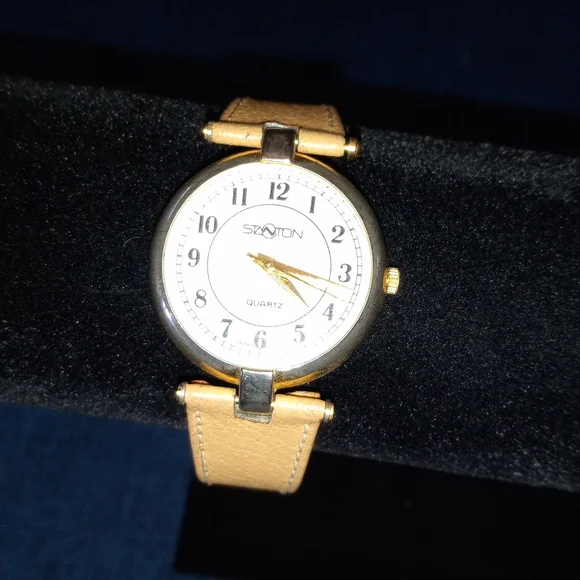 Watch Stanton quartz Japanese movement gold color with a beige genuine leather band