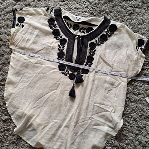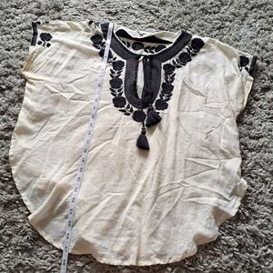 Star Mela | Cream white & black embroidered tunic shirt with tassels