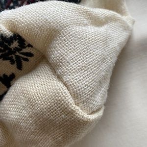 Star Mela Embroidered Jute Tote Bag. A very fun summer tote, with cotton fabric lining and leather handles. Open top. Interior slit pocket with zip closure for your valuables (I once lost a special ring by not putting it in a zip pocket when I was at the beach!!). Detachable fringed tassel, pom pom, beaded, and mirrored accent. Measures approx 13 x 13" x 5". Double leather handles measure approx 16" with 7" drop. Never used! There is some embroidery coming loose in places, but that's the nature of embroidery like this! Originally over $200CAD