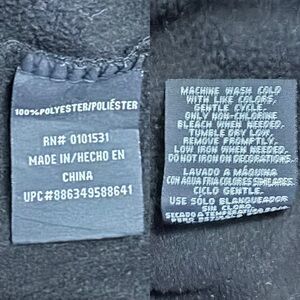 Features: Star Wars spell out graphic with gray stripes printed in large size on front, hoodie has crew neck and hood with thick drawstring, inside of hood lined with black mesh, outer fabric is smooth and a bit shiny, inside feels like fleece lined, gray stripe detail on hood, sleeves, logo and pocket, embellished white stitches