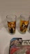 Set of four Star Wars character glasses with action figures. Features iconic characters in vibrant designs.