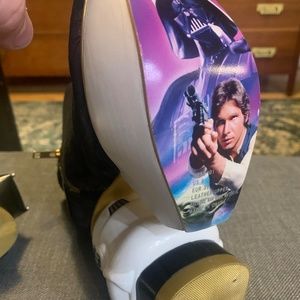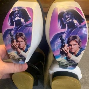 One boot heel is Darth Vader, the other a Stormtrooper.