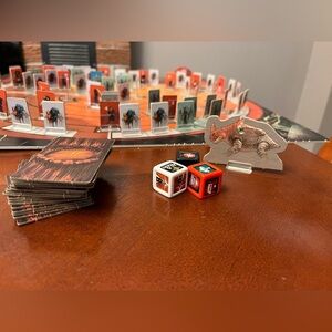 Great condition. Game is complete - includes game board, all cards, pawns and stands, as well as three dice. 8 years and up. 2-5 players. The box has some minor dings/wear.