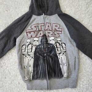 Star Wars Kids Black Gray Zip-Up Hoodie Sz M 7/8 Darth Vader Graphic Sweatshirt