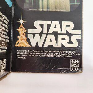 Star Wars Princess Leia Organa Large Size Action Figure, 1979. Comes with hair accessories, they are at the bottom of the box. Cello has slipped down but figure is still tied into the box, though it may have been removed to add the belt and then replaced. Box has some wear as shown.