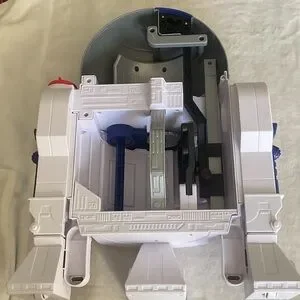 R2-D2 action figure from Star Wars. Features blue, white, and silver colors. Iconic design with detailed features.