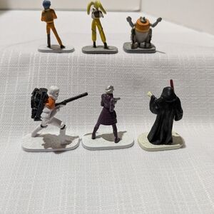 Disney Parks 2014 Star Wars miniature figurines. From Series 15 collector packs. Measures approx 1.5 inches high. Includes Ezra Bridger, Hera Syndulla, Sand Trooper, Chopper, Emperor Palpatine and Zam Wessell. All figures in good overall condition.
