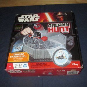 This board game Star Wars: The Force Awakens - Galaxy Hunt Game from Wonder Forge is complete and has no pieces or cards or the game board missing and everything is in decent except some box wearing and damage as shown in the pictures. It is sold as is.
