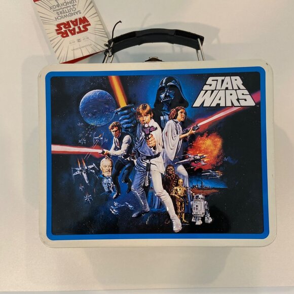 Item keywords: Star Wars lunch box, collectible tin, sandwich cutters, Williams-Sonoma, galaxy theme, kids lunchbox, Darth Vader art, Lucasfilm product, sci-fi gift, metal lunchbox, Star Wars memorabilia, intergalactic lunch, durable tin box